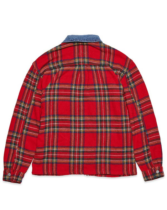 Red Flannel Shacket With Denim Contrast