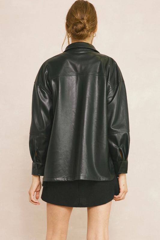 Sold outBlack Faux Leather Shacket