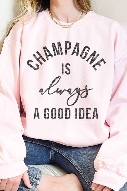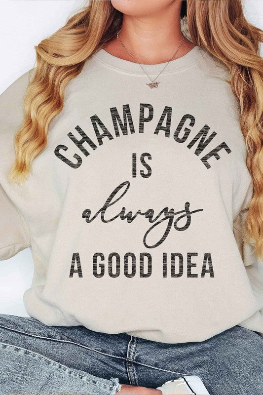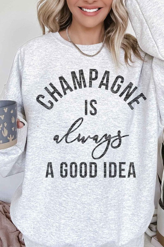 CHAMPAGNE IS ALWAYS A GOOD IDEA OVERSIZED GRAPHIC SWEATSHIRT
